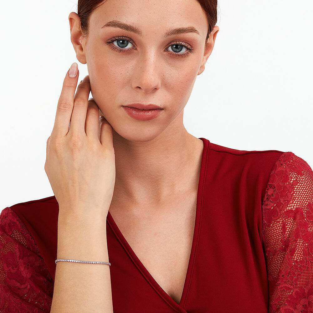 Ženski srebrni narukvica, podesiva, teniski model sa ružičastim cirkonima, LA PETITE STORY
