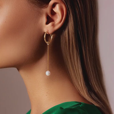 Ženske naušnice, okrugle, California, 2 cm, s visećim biserima na ušnoj resici, 5,7 cm, pozlačene, Lilou.